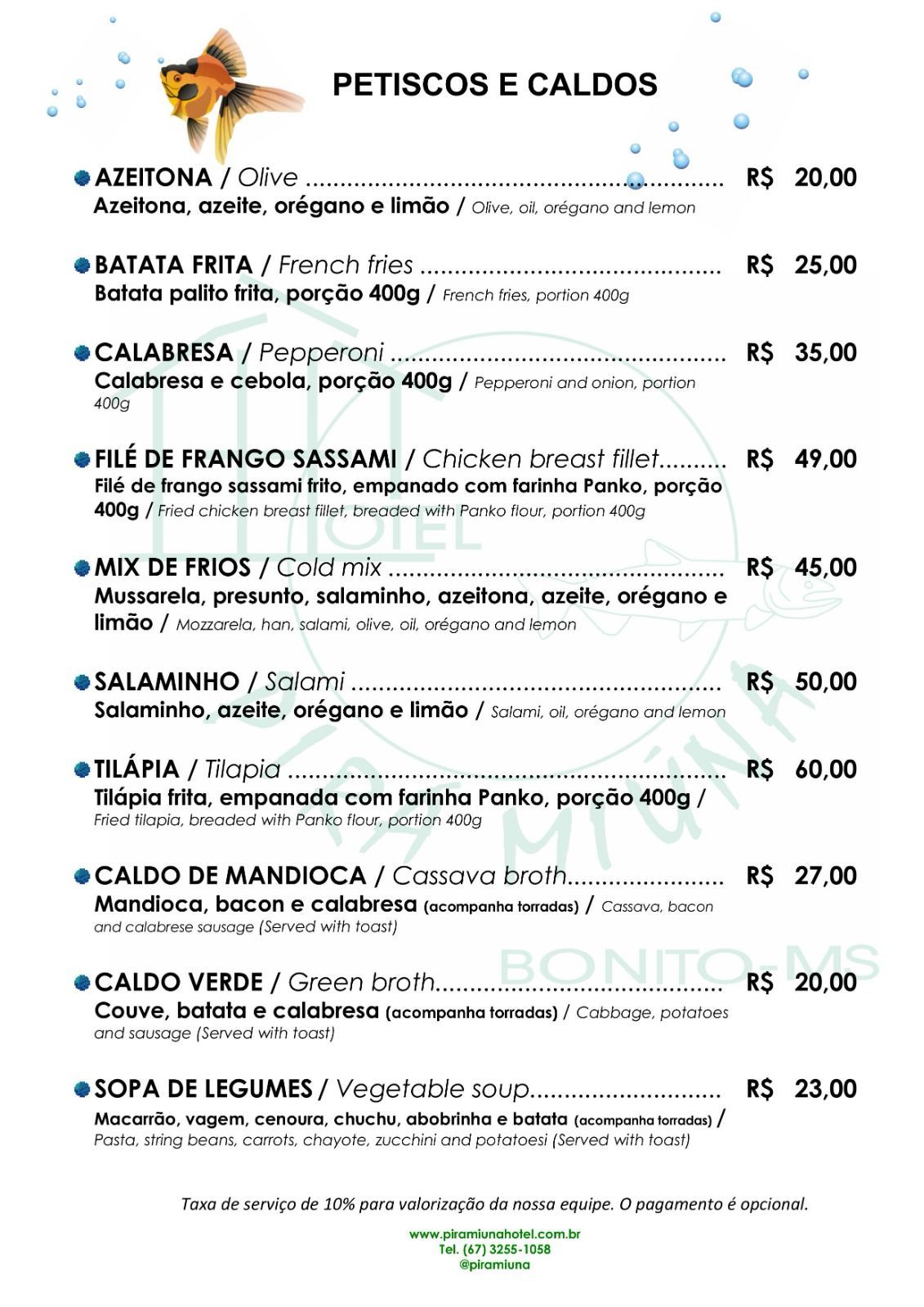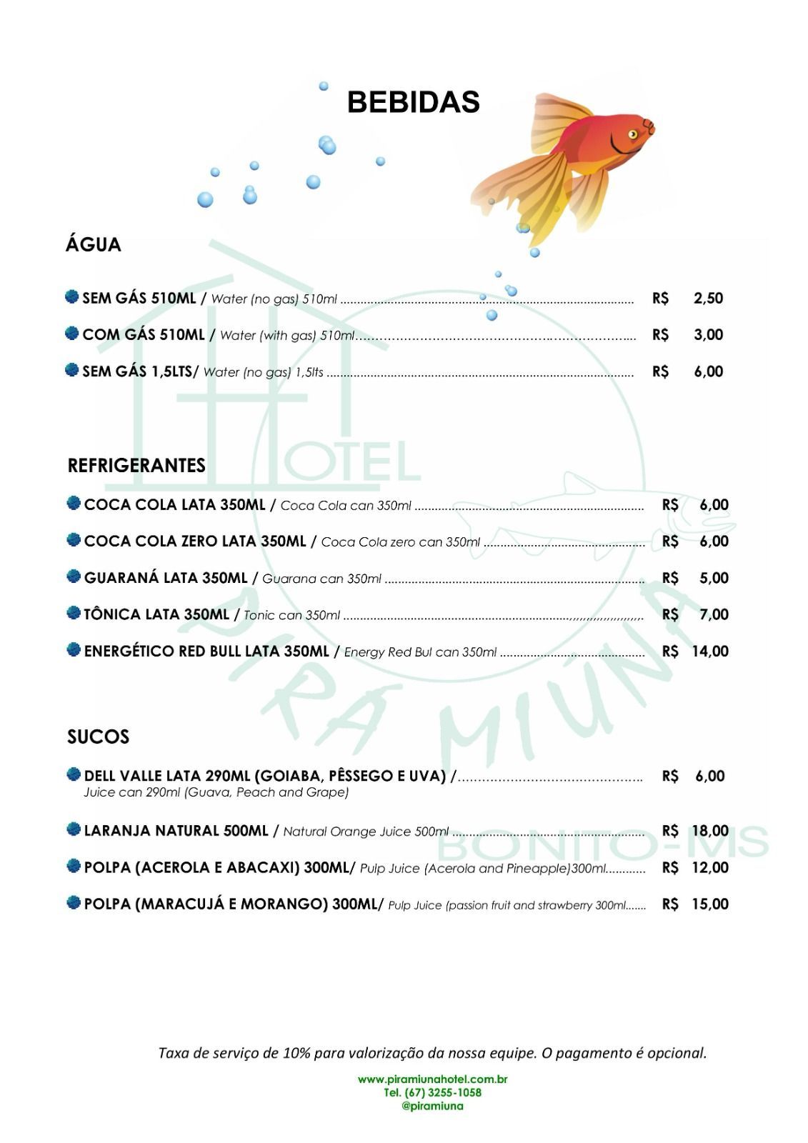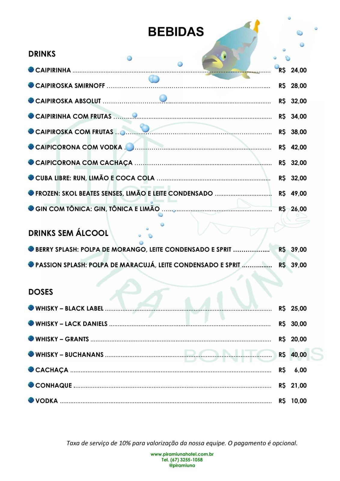 Cardápio Bar - Hotel Pirá Miúna!