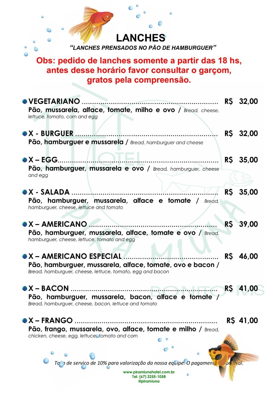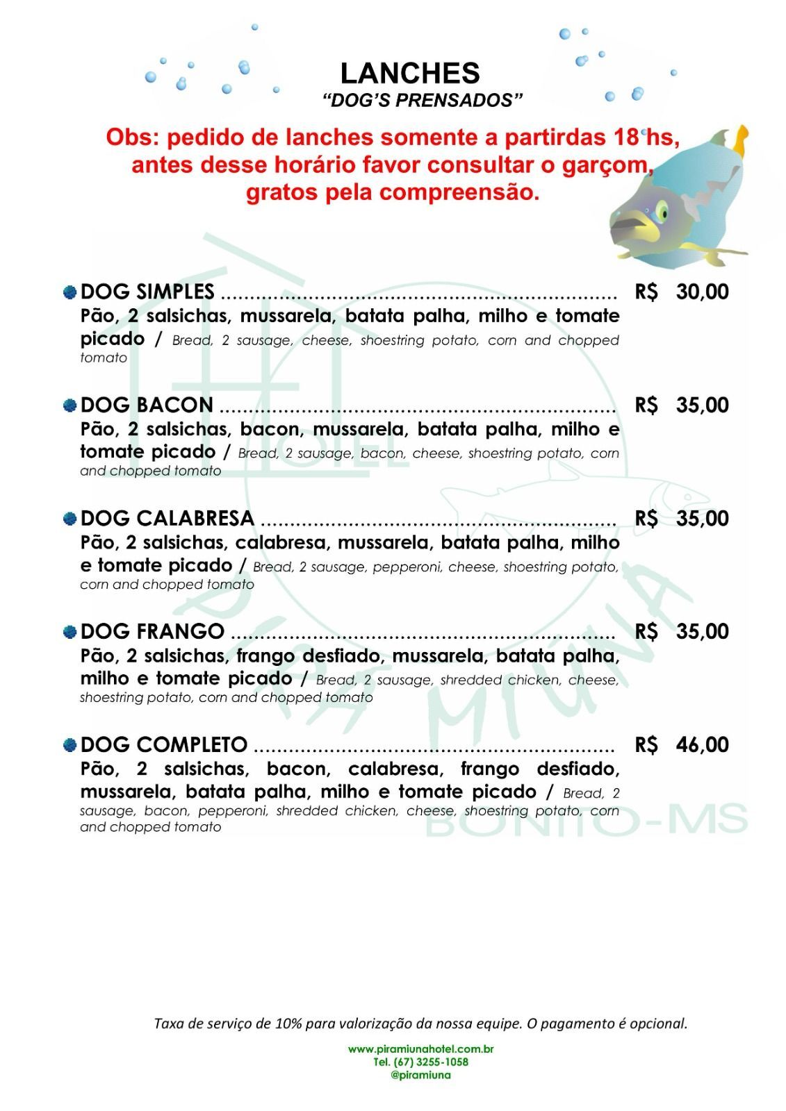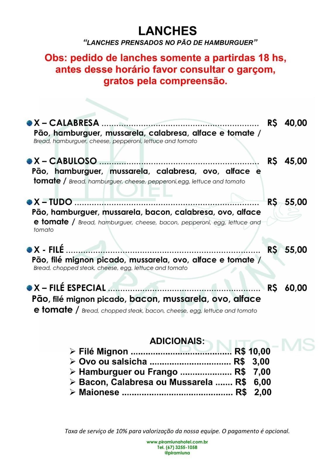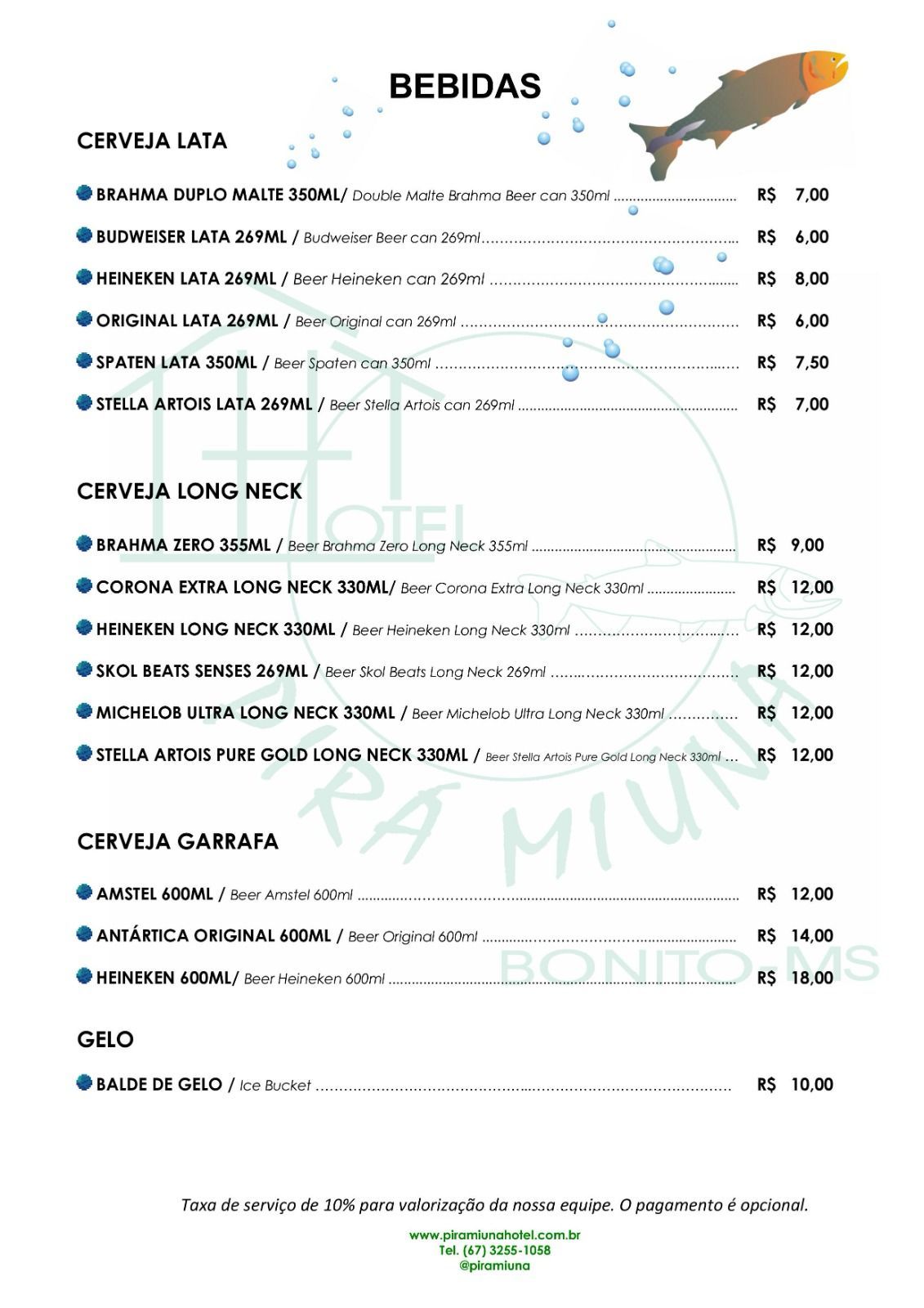 Cardápio Bar - Hotel Pirá Miúna!